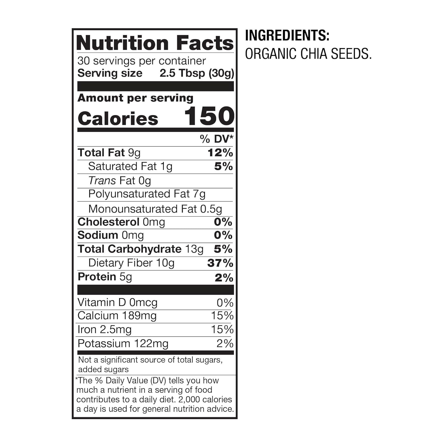- WITH OMEGA-3 & MORE: Chia seeds are loaded with 5350mg of omega-3, 10g of fiber, which is 7% of the DV recommended amount for fiber. In the ancient Mayan language, the word “chia” meant strength, so the name speaks for itself. Our Organic Chia Seeds can also be used as an egg replacement when cooking or baking. Simply mix 1 tbs. of chia seeds with 3 tbs. of water, let sit for 5 minutes, and consume or bake immediately